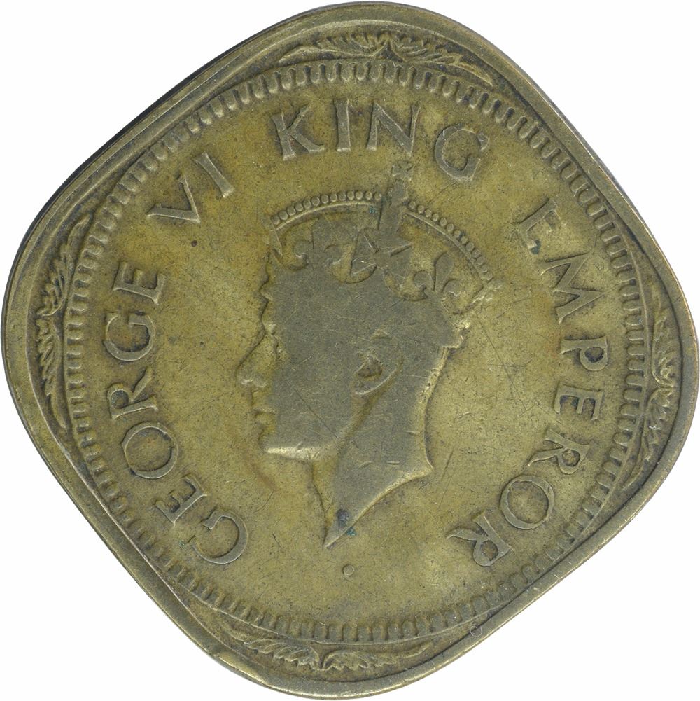 King George VI, Copper Nickle 2 Annas, Error:clear obverse lakhi brockage with deep impressions of obverse at reverse making impressions expanded,about extremely fine, Very Rare.