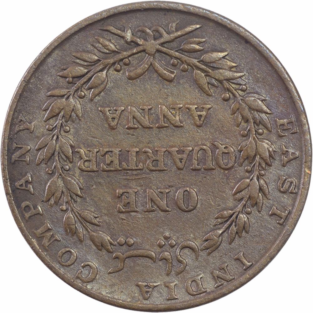 Error Copper One Quarter Anna Coin of East India Company 1835.