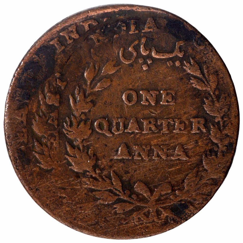 Error Copper One Quarter Anna Coin of East India Company of 1835.