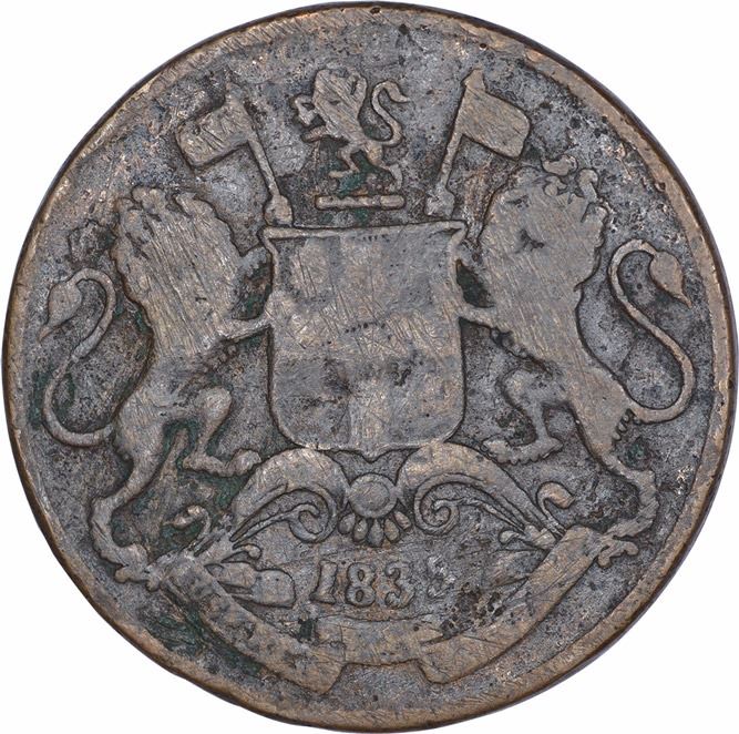 Error Copper One Quarter Anna Coin of East India Company of 1835.