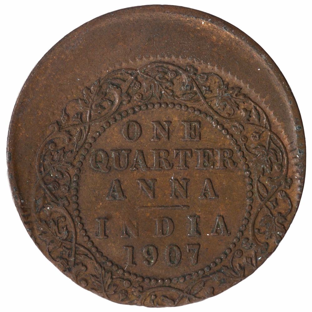 Error Copper One Quarter Anna Coin of King Edward VII of 1907.