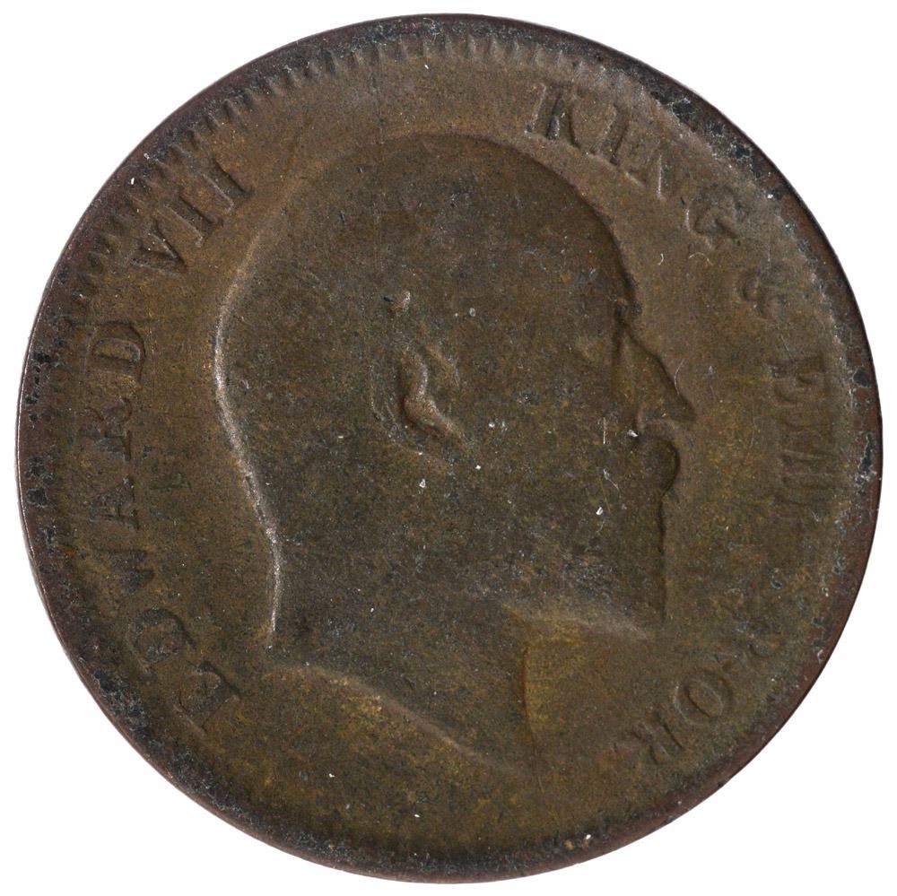 King Edward VII, Copper 1/4 Anna, Error: clear obverse lakhi brockage with deep full impressions of obverse at reverse, about very fine, Very Rare.