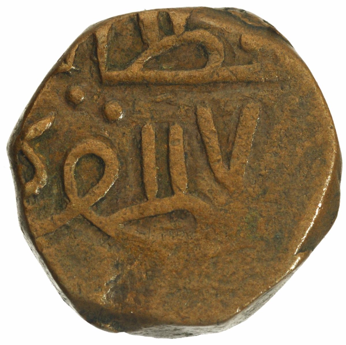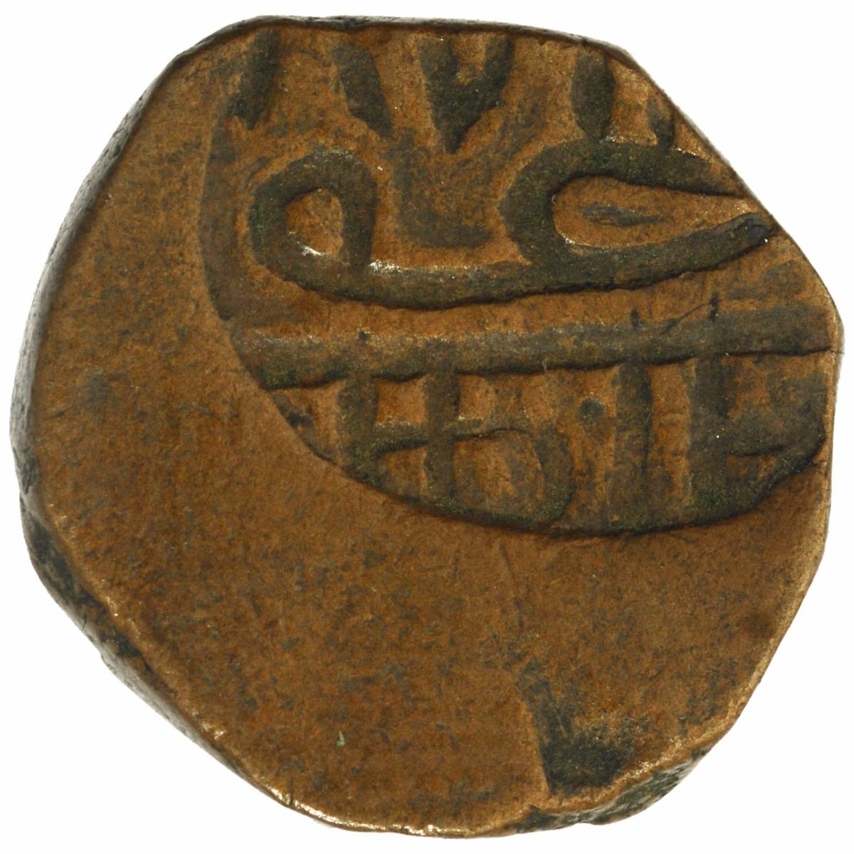 Nawanagar, Copper Paisa(Trambiyo), Brockage Shifting Error, Error:brockage lakhi impression of obverse and 40 % off struck on reverse, 3.30g, 14.18mm,about very fine, Rare.