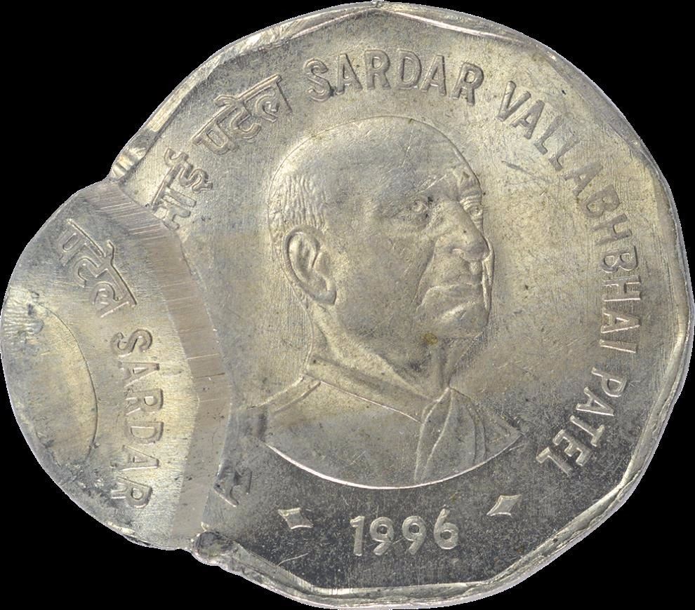 Error Cupro Nickel Two Rupees Coin of Sardar Vallabhai Patel of 1996.