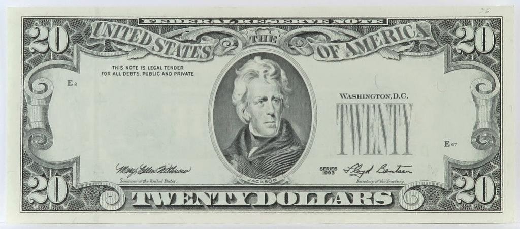 Error Note: 1993 $20 Federal Reserve Note - 3rd Printing on Reverse.