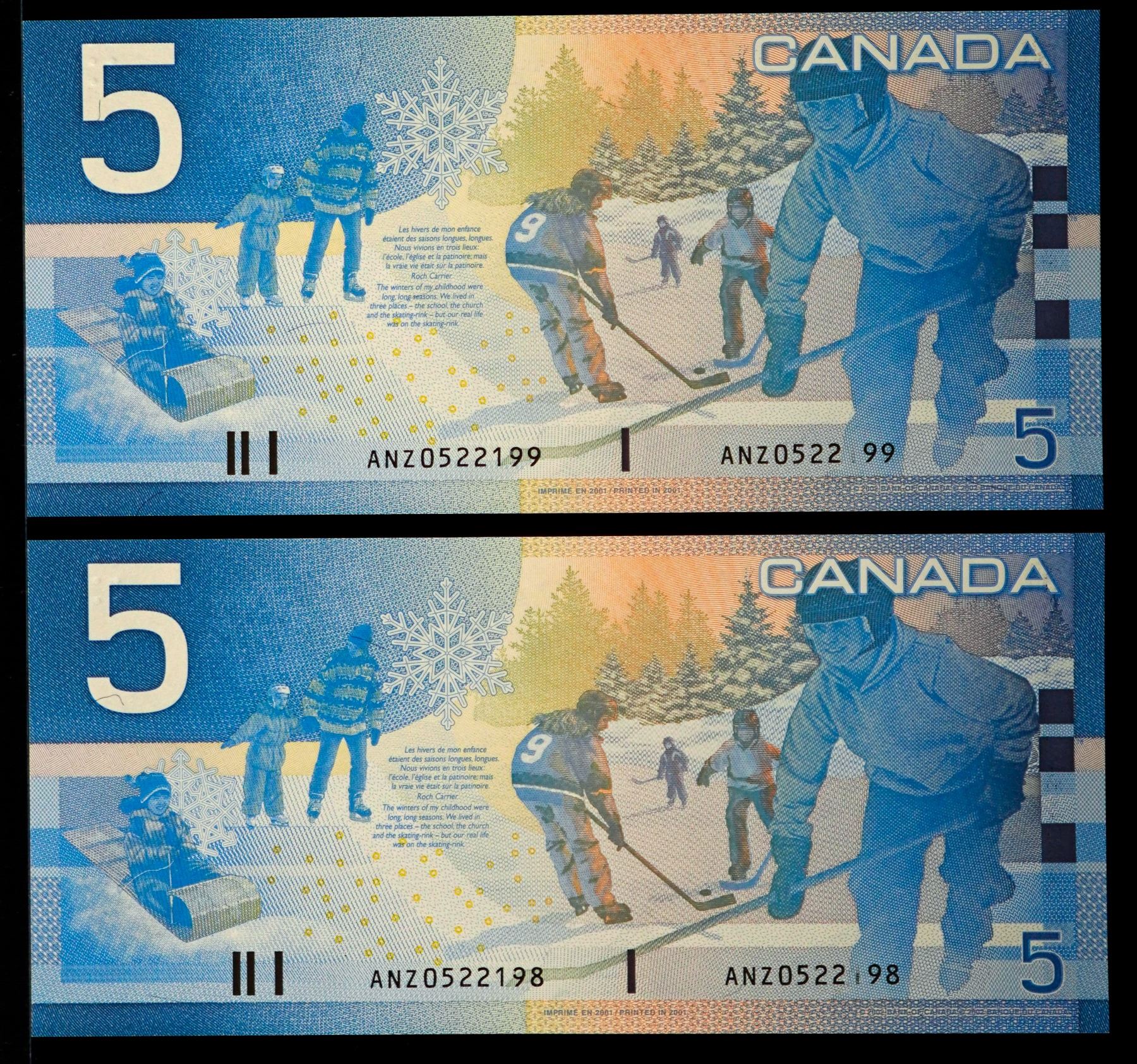 Error Note; 2001 $5 BC-62a #ANZ0522198-199 Partial Digit Serial Number, both UNC or better.