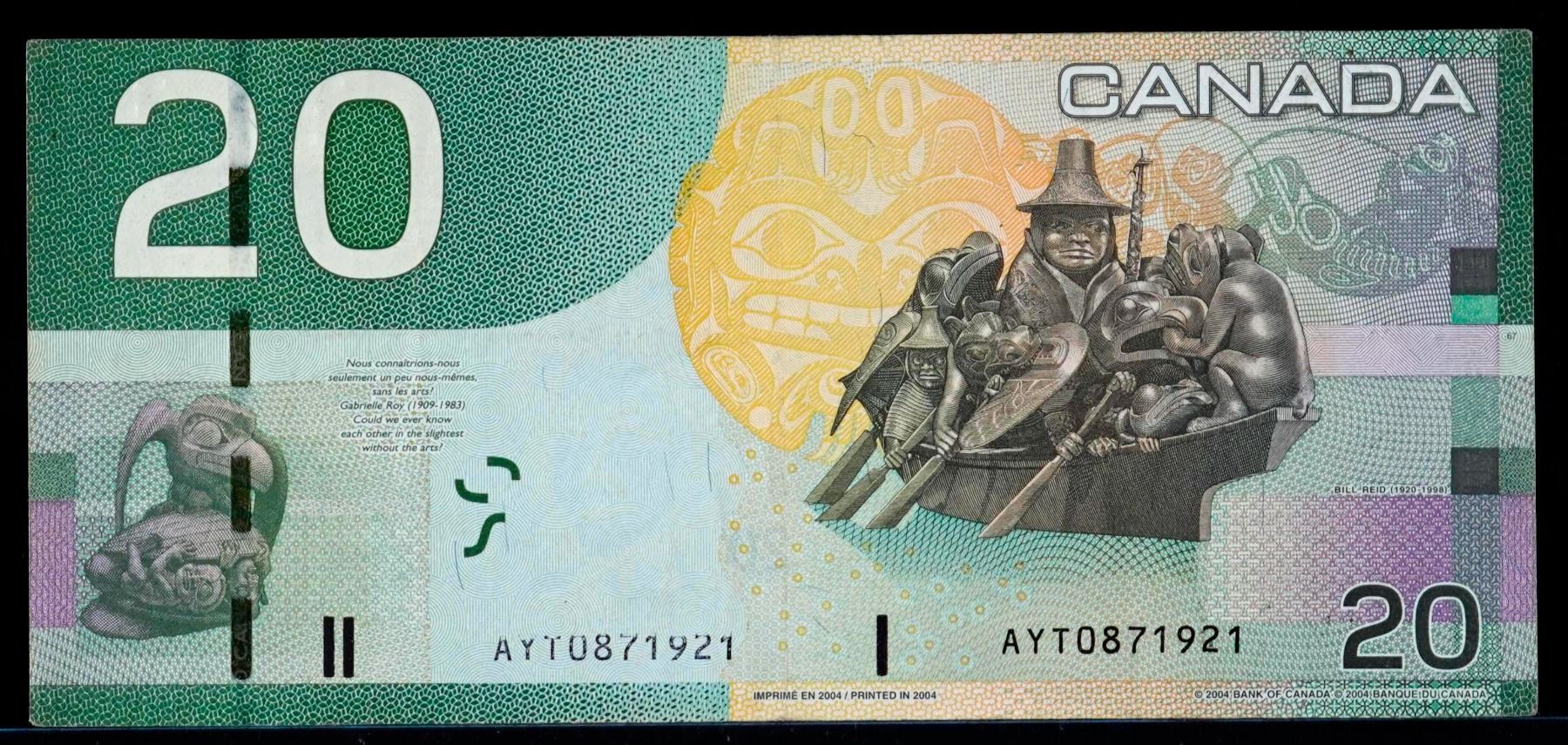 Error Note; 2004 $20 BC-64a #AYT0871921, the serial number is light at left.