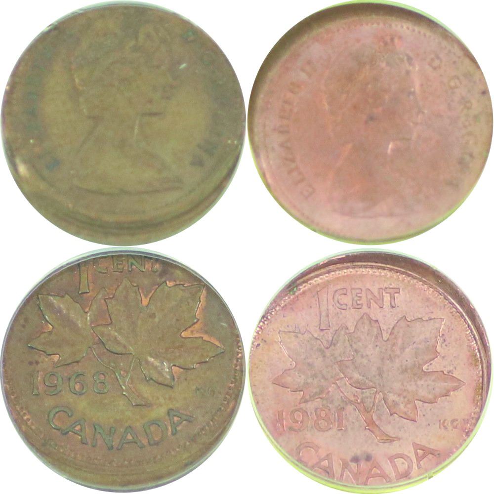Error; Pair of Off Centered Canadian 1 cent CCCS Certified. You will receive a 1981 MS 63 RED off center approximately 10-15% and a 1968 AU-58 off center approximately 20%.