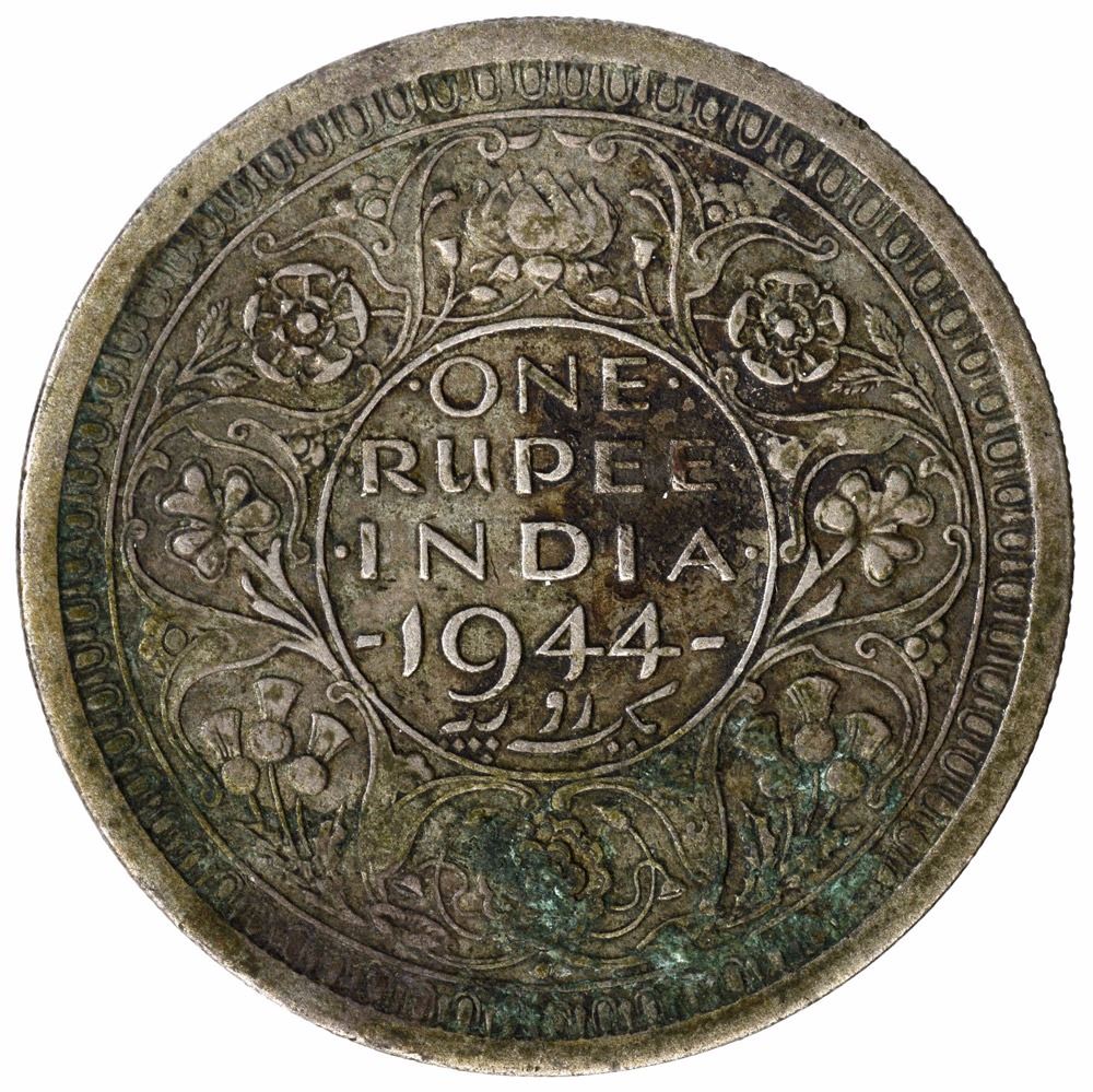 1944,King George VI,Silver Rupee,Error:milled edge and security edge both, interesting variety, choice extremely fine+,Rare.