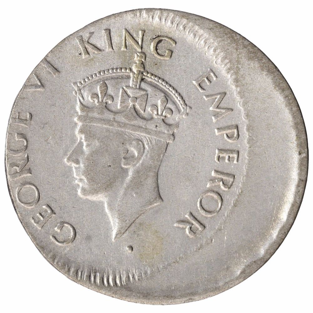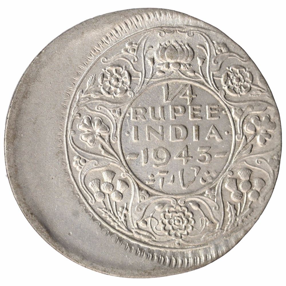 Error Silver Quarter Rupee Coin of King George VI of Bombay Mint of 1943.