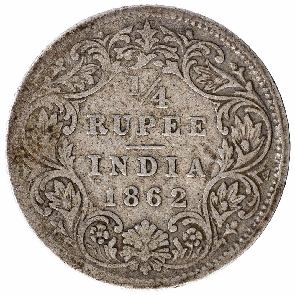 Error Silver Quarter Rupee Coin of Victoria Queen of 1862.
