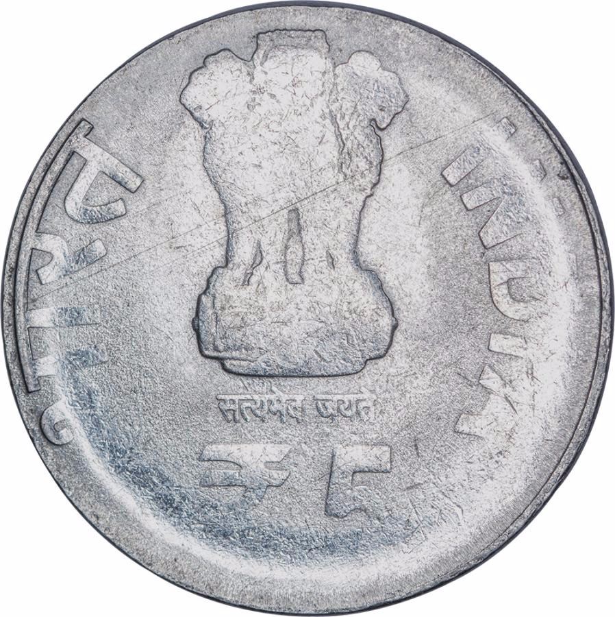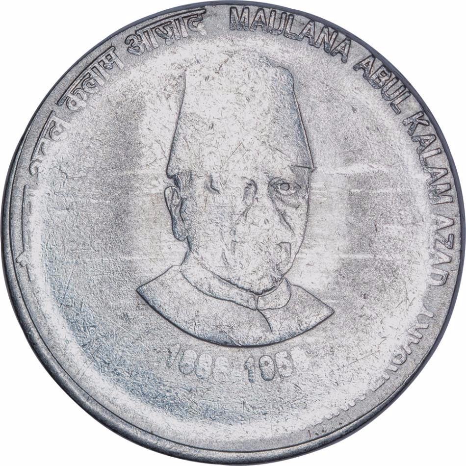 Error Steel Five Rupees Coin of One Hundred and Twenty Fifth Birth Anniversary of Maulana Abul Kalam