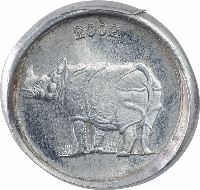 Republic India, Steel 25 Paisa, 2002,Error: weak struck on obverse, bowl like shape, expanded flan,2.8g, 21.86mm, about extremely fine.