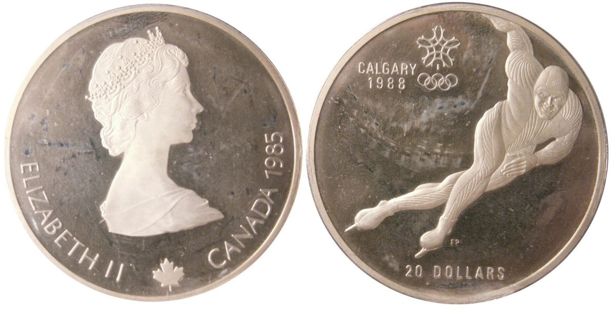 Error coin, 1985 $20 ICCS PF66 No edge lettering, scarce.