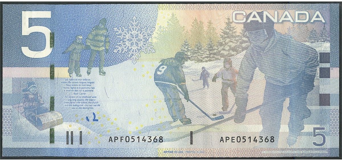 Error issue; 2006 $5 BC-67a. Mismatch PREFIX #APF0514368 - APE0514368, Gem unc. RARE. First one seen by the cataloguer