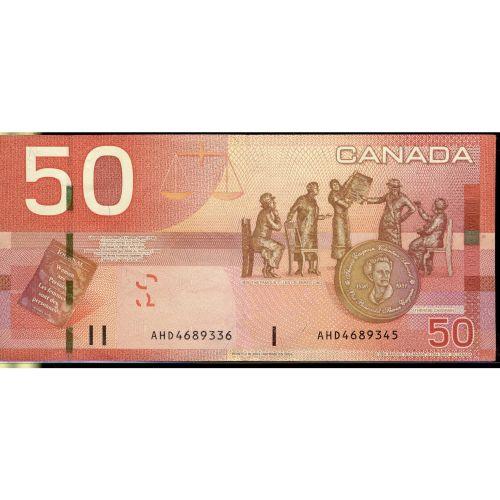 Error note, BC-65a 1988 $50. ERROR, with mismatch serial numbers #AHD4689336-AHD4689345