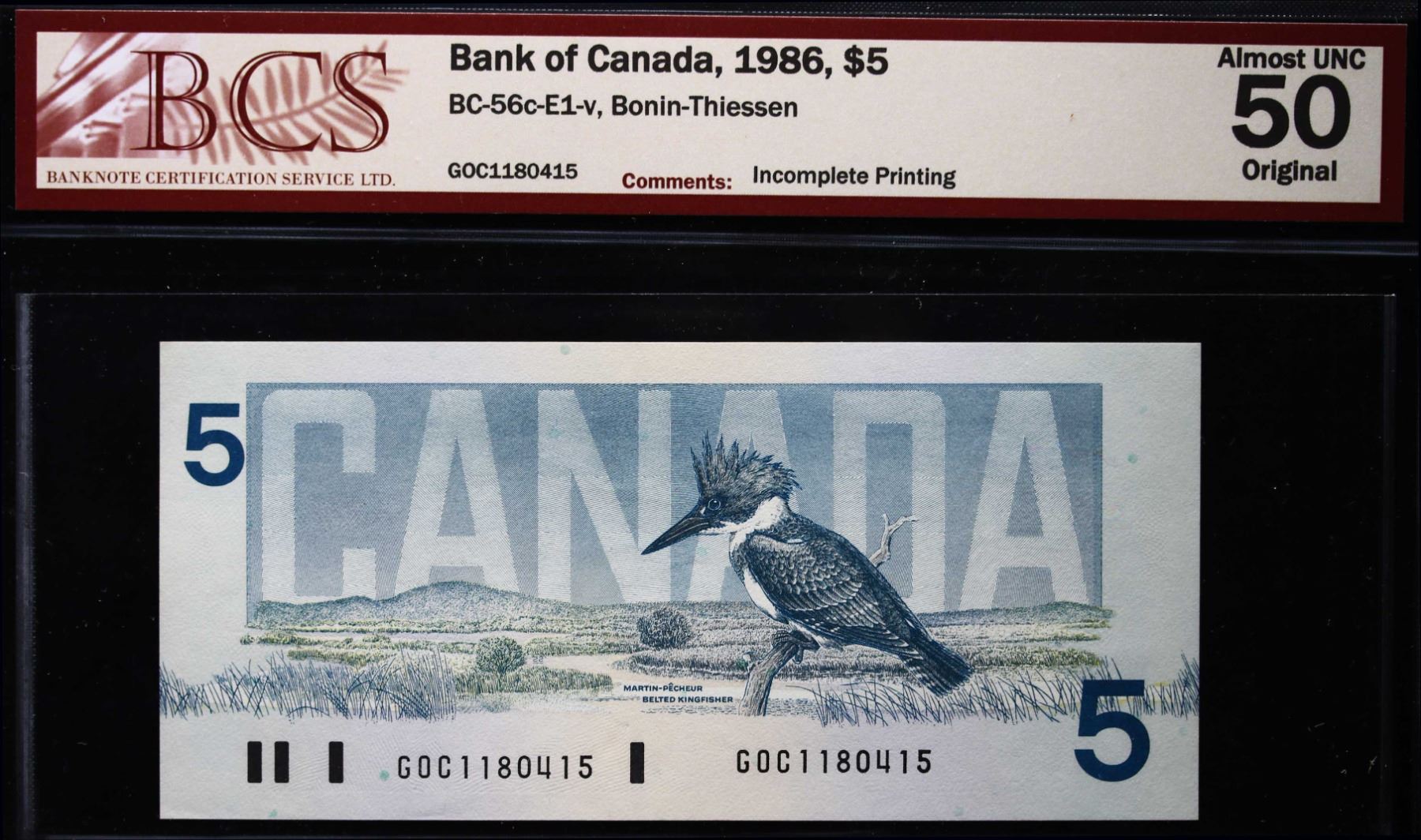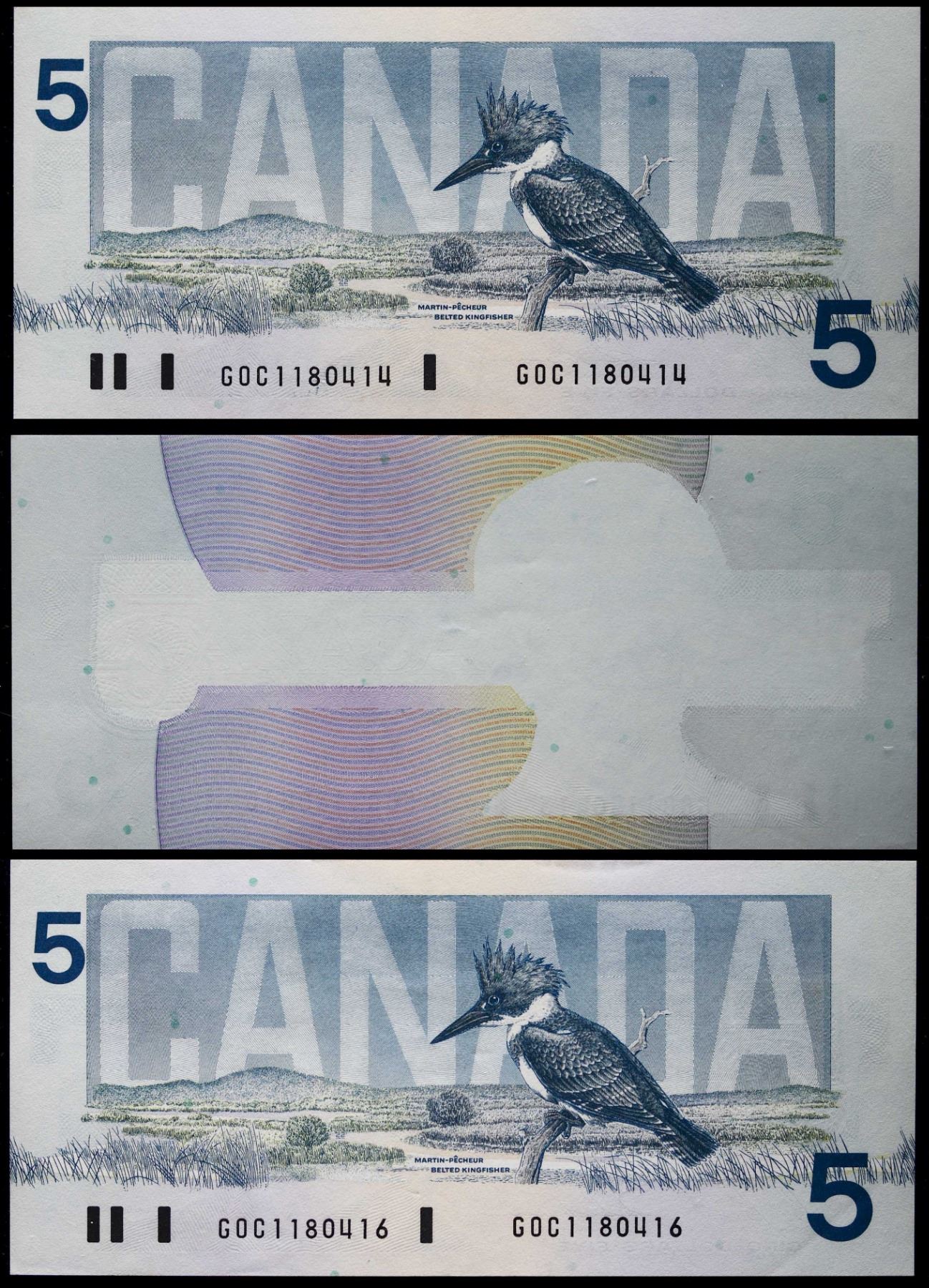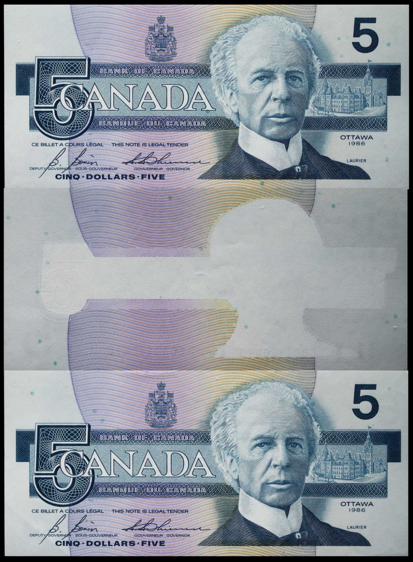 Error set; 1986 $5 BC-56c #GOC118014-80415-80416 All 3 notes BCS About Uncirculated Original. "Missing Face printing on middle note". Major and cool error set! Lot of 3 notes.