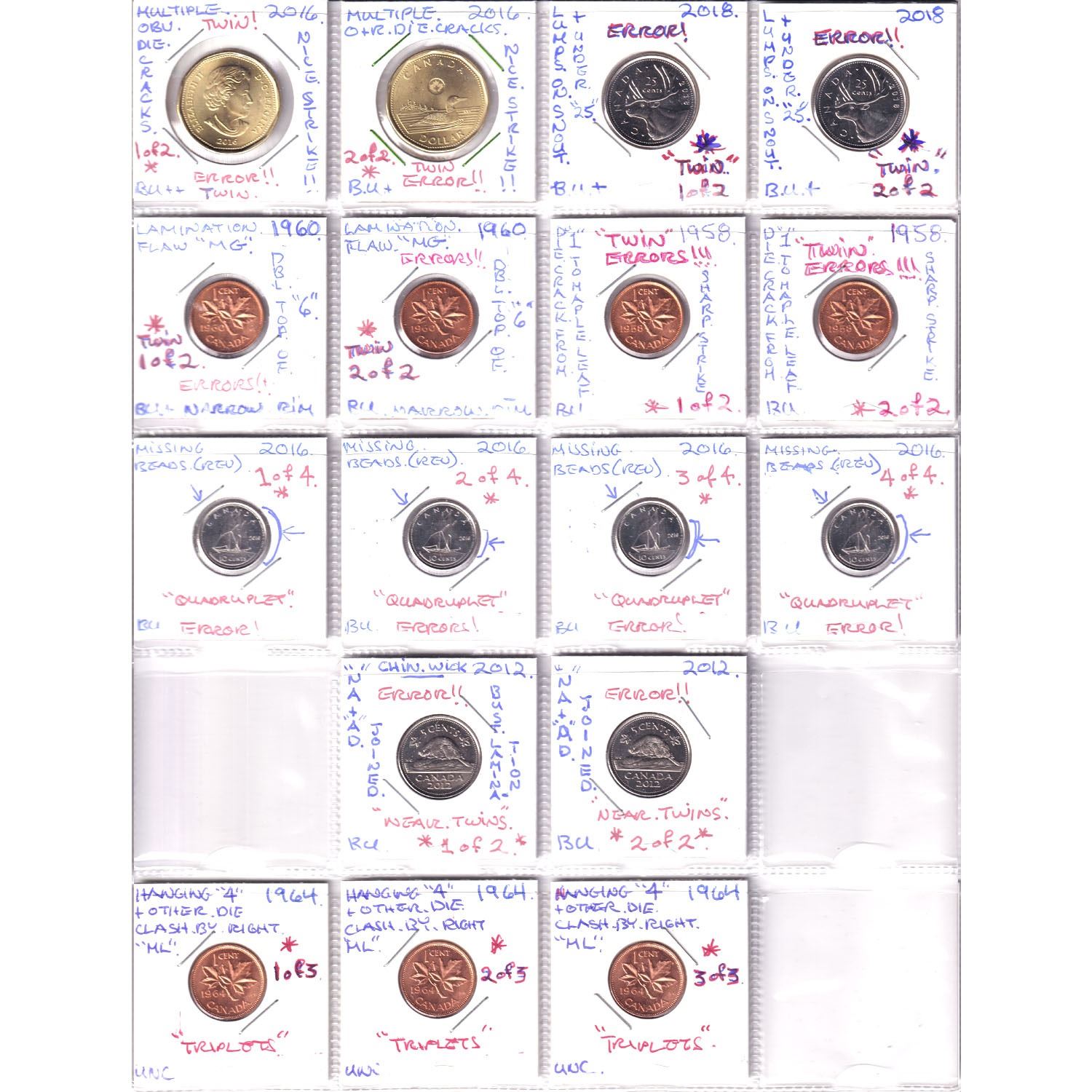 Errors 17 x Canada Error 1c, 5c, 10c, 25c & Loon $1. Please view image for details. 17pcs