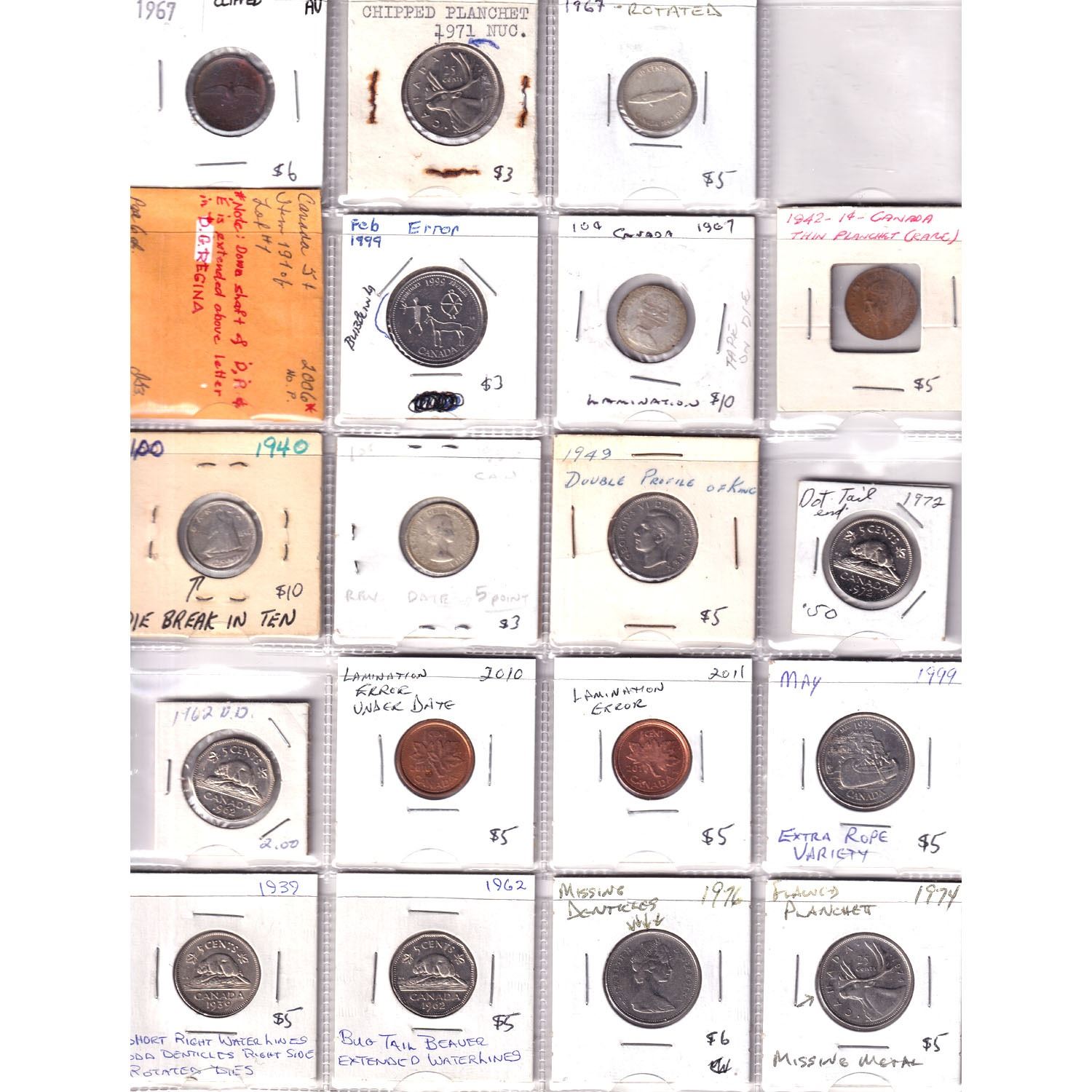 Errors: Estate Lot of Canada Miscellaneous Coin Errors. 19pcs.