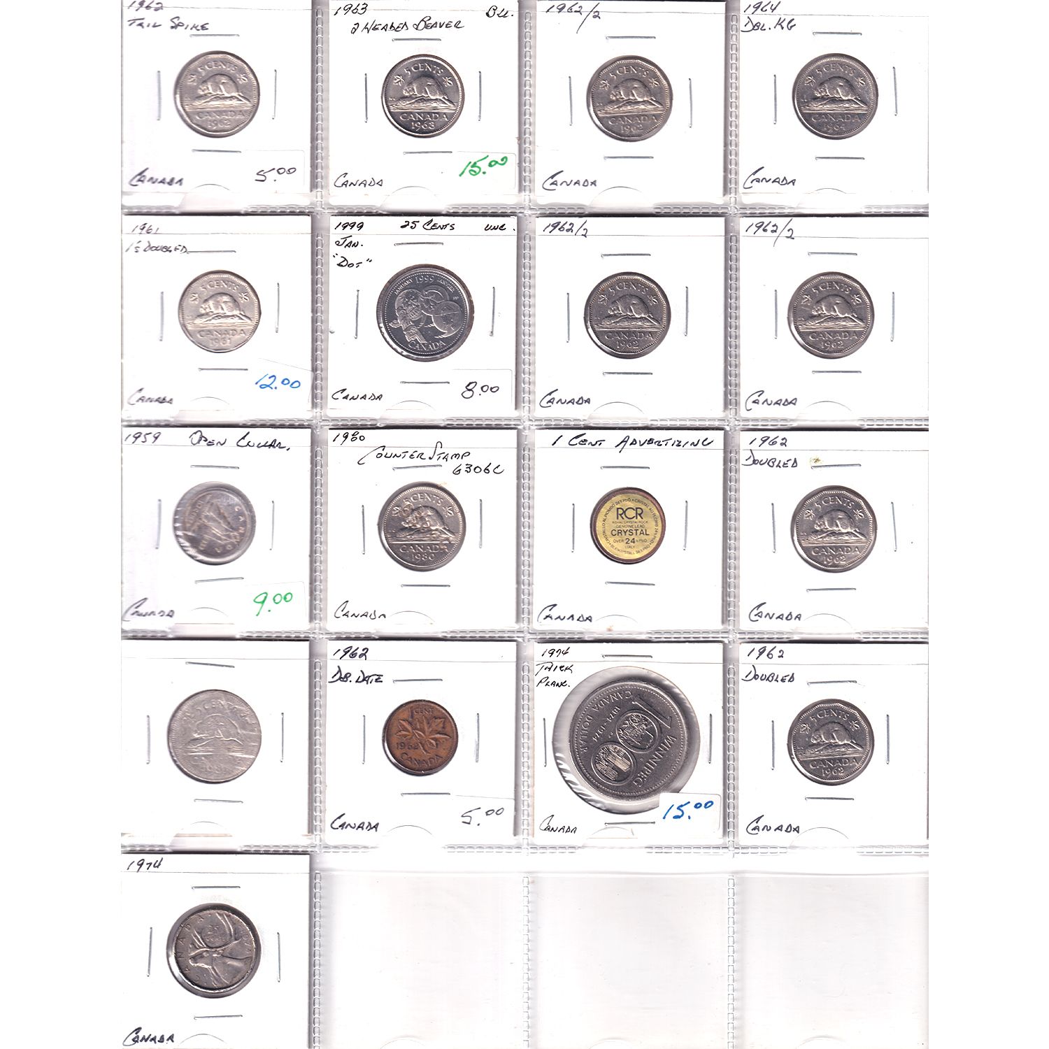 INCLUDES: Canada 1962 Double date, Canada 1980 Counter Stamped 6306C, USA 1980 Gold Plated & Many More!! Sold as is; please view images for details. 37pcs.