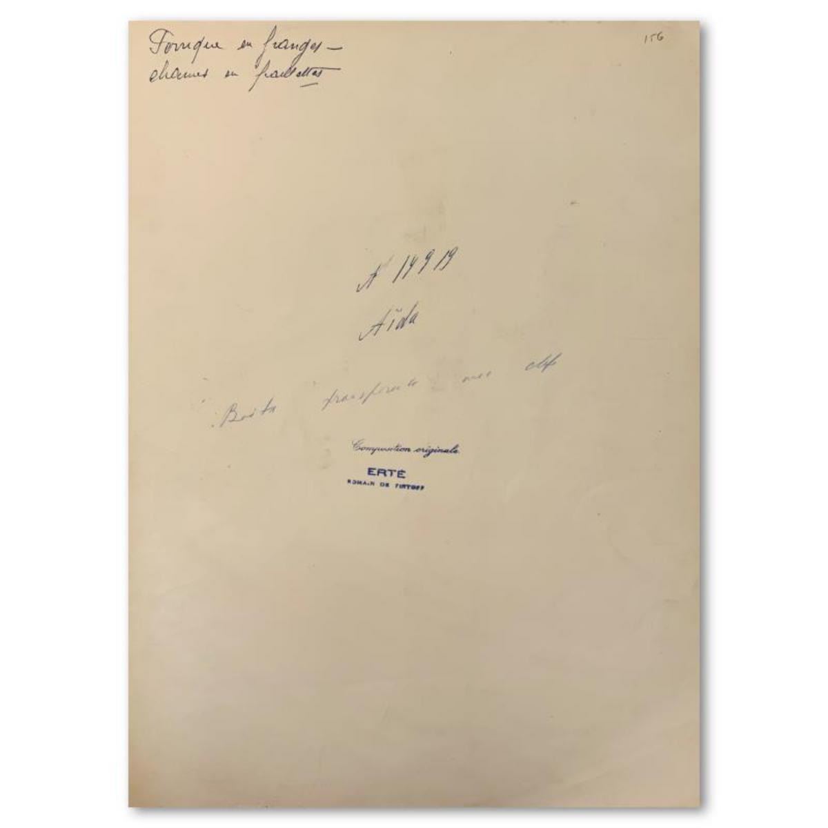"Aida" is an original gauche painting on paper with gold leaf by Erte (1892-1990), hand signed by the artist. This piece bears the stamp, title and registration number 14.919 inverso. Includes Letter of Authenticity. Measures approx. 11" x 15". Reference #: 250879