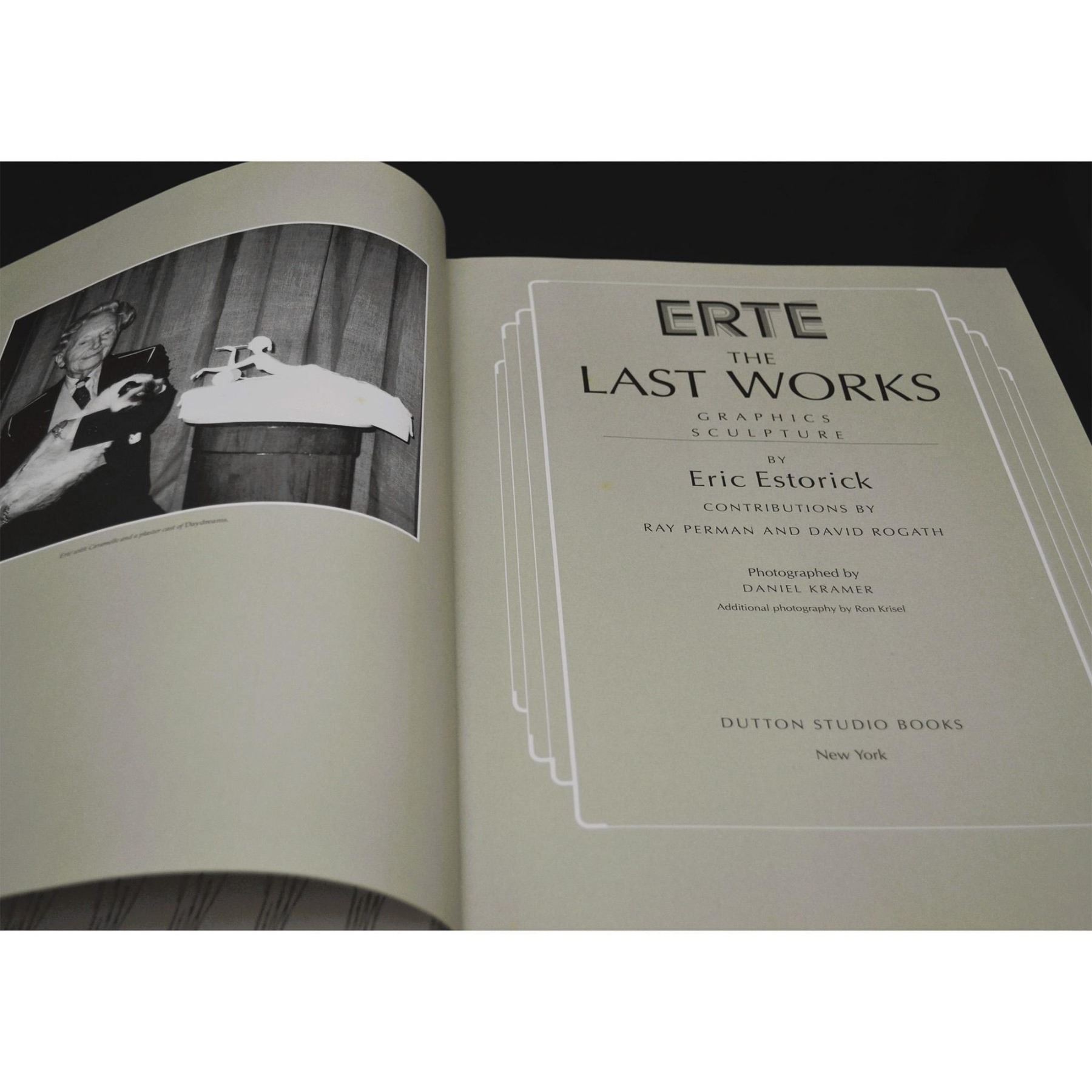 Erte' The Last Works Graphics Sculpture Book by Eric Estorick. A Hard Cover Book with Dust Jacket. 176 Full Color Illustrations. Published by Dutton Studio Books, New York. HardCover. ISBN: 0-525-93439-1. This book is a First Edition, first printing in 1992 by Dutton Studio Books printed in Italy, hard bound, with dust jacket, bound in slate gray cloth w/silver foil lettering on the Dust Jacket. Size: 14" x 10 .75" x 1". Excellent condition, like brand new. More than just a coffee table book, it's an excellent reference book. From the Archival Collection of Re Vann Galleries, G.Reasoner, Owner.
