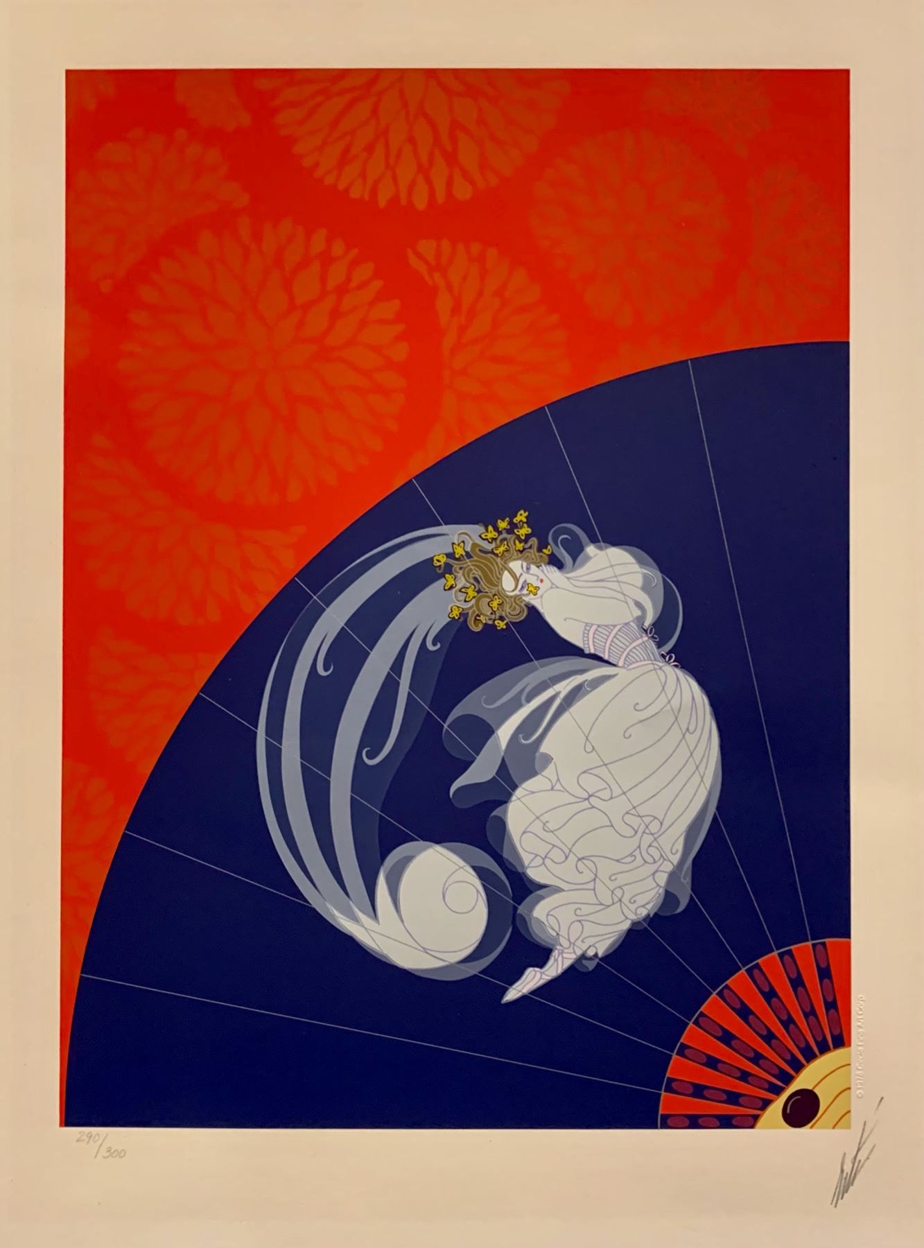 Erte (Roman de Tirtoff) 1892-1990. Hand signed and numbered original serigraph, titled "Legrerete." Hand signed in pencil bottom right, numbered 290/300 and blind stamp bottom left. Featured on the September 1921 Harper's Bazar cover. Publisher Circle Fine Arts, 1978. Suite: The Twenties Remembered Again.