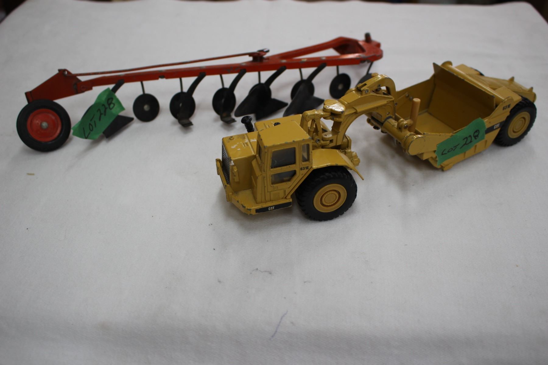 Ertl Die Cast Metal Model of a Cat 631E Earth Mover and a Ertl Cultivator