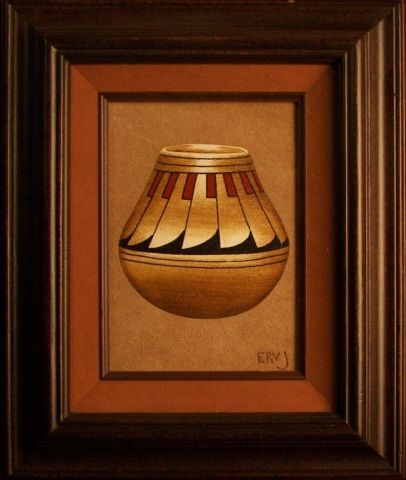Erv Johnson, Acrylic on velvet, Erv Johnson, Acrylic on velvet, " San Ildefonso ", Signed lower right, 7" x 5",