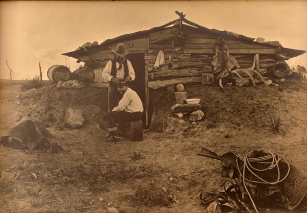 George Patullo giving Harry Campbell a haircut photograph by Erwin E. Smith. Measures 9" x 7".