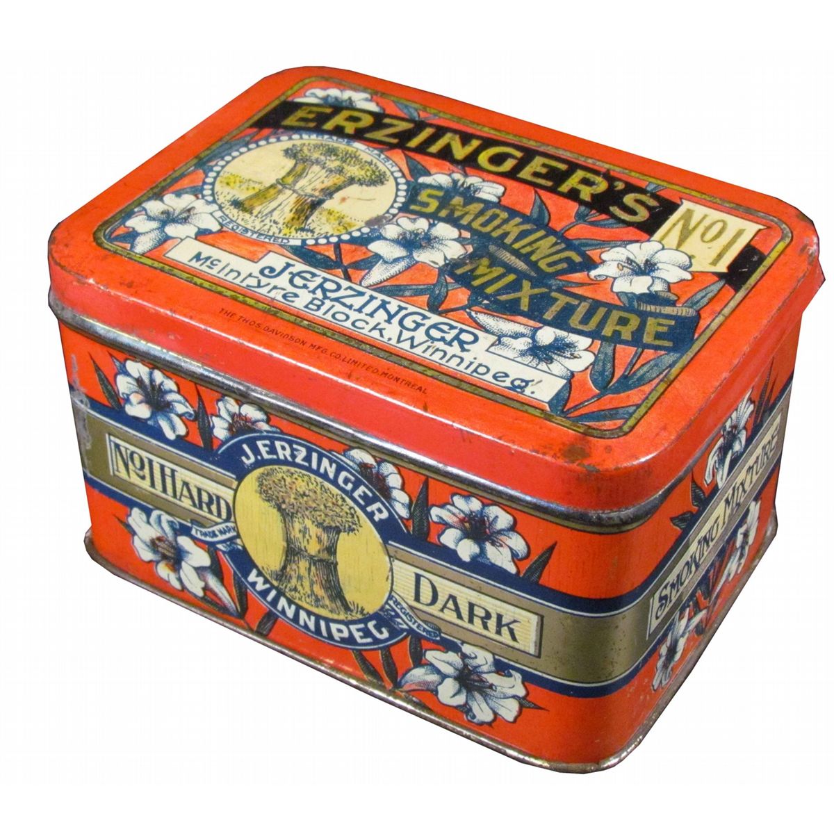 Erzinger's No. 1 Smoking Mixture Tin. A few light scratches otherwise very good condition. 5 X 3 X 3 3/4 inches.