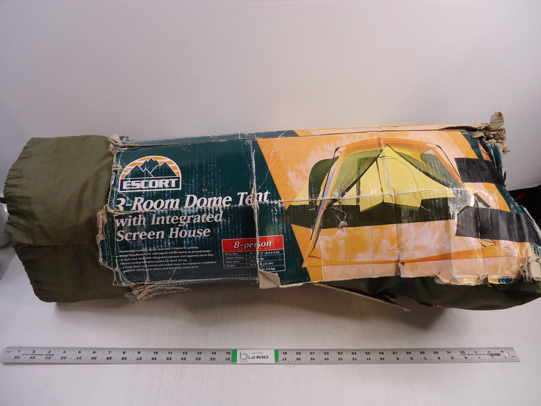 *Escort 8 Person 3-Room Dome Tent with Integrated Screen House-unknown if complete-as is