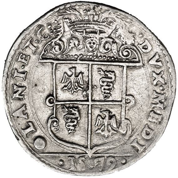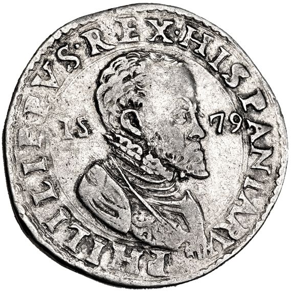 Escudo. 1579. Milán. A/ PHILILIPVVS·REX·HISPANIARV. Fecha en anv. y rev. cr-11A. MBC+. Rara.