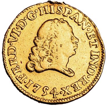 Escudo. 1754. México. MF. VI-461. Soldadura en el canto. BC+/MBC-. Muy escasa.