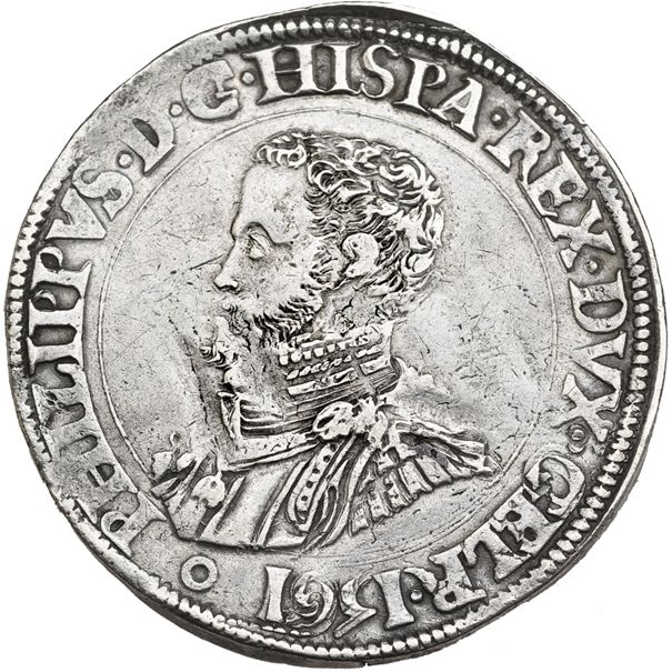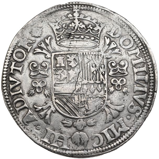 Escudo Felipe. 1561. Nimega. PHILIPPVS al comienzo de la ley. del anv. y GELR al final. DL-I, 30. DAV-8493. Vanos en el anv. MBC.