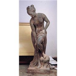 Escuela francesa, S. XIX. Según Houdon. "Venús del baño" Altura: 170 cms. Hierro fundido. Excelente estado de conservación, manteniendo su pátina antigua.