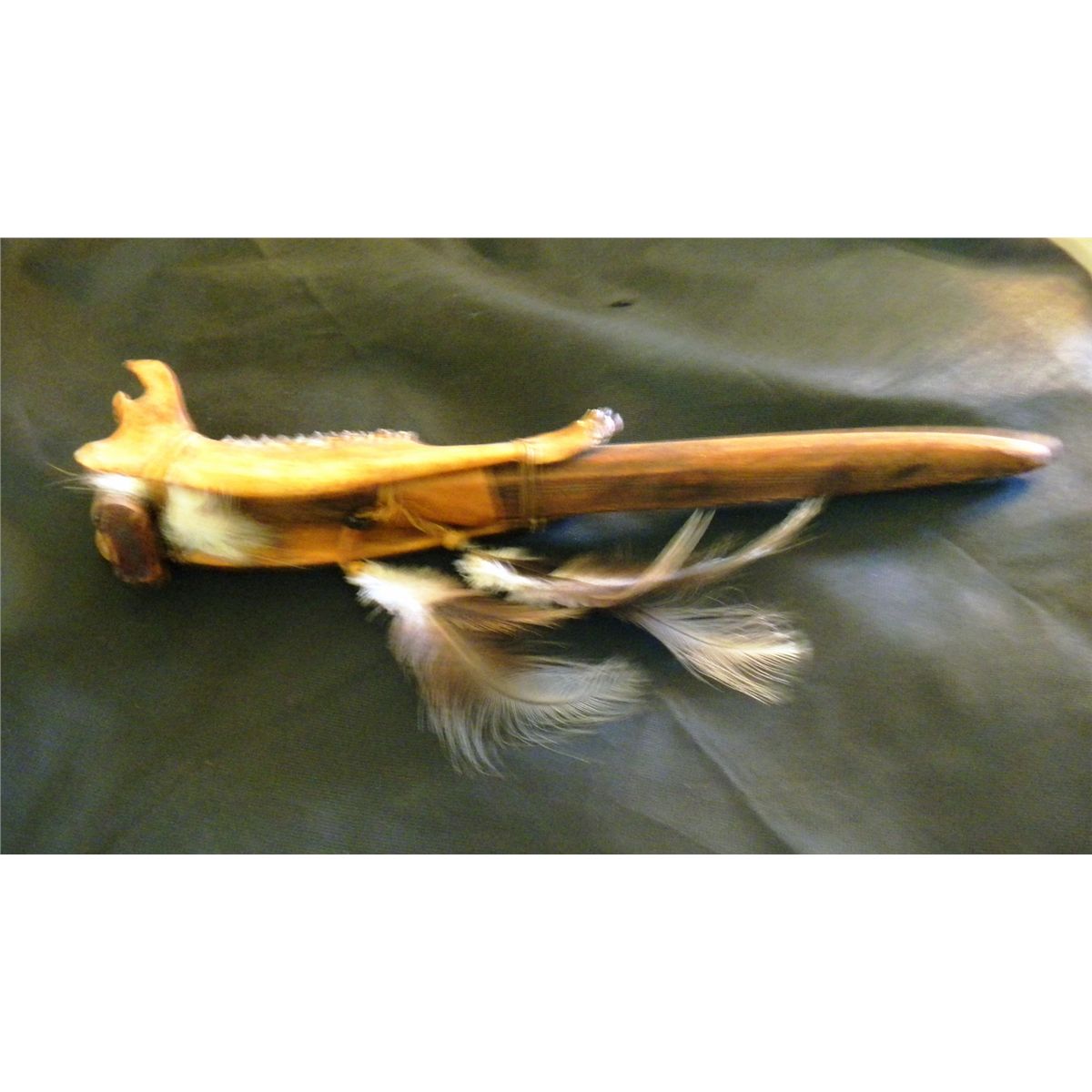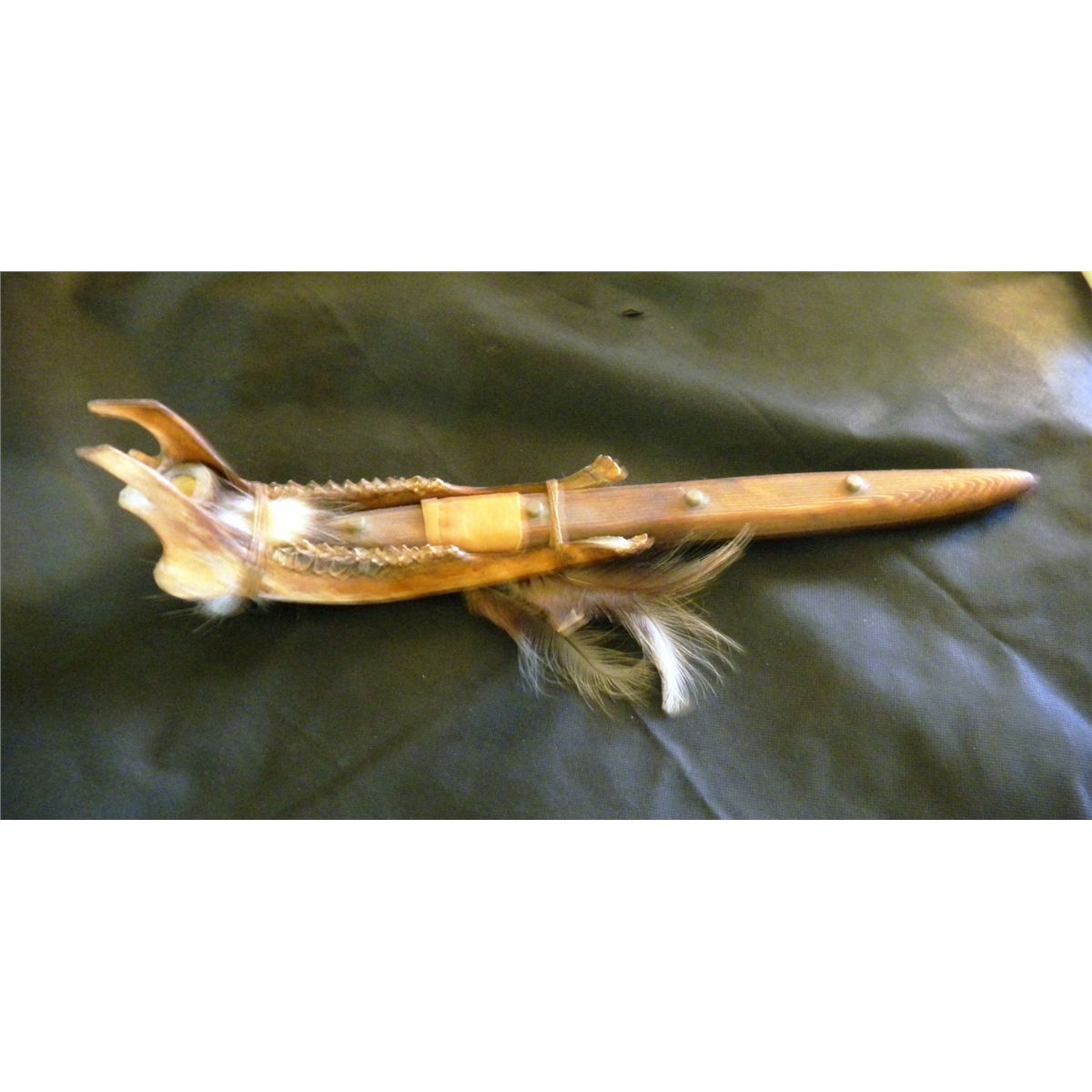 Eskimo Bone, Antler and Wood Pipe. Pipe Measures - 17"x2 1/2" x 5"