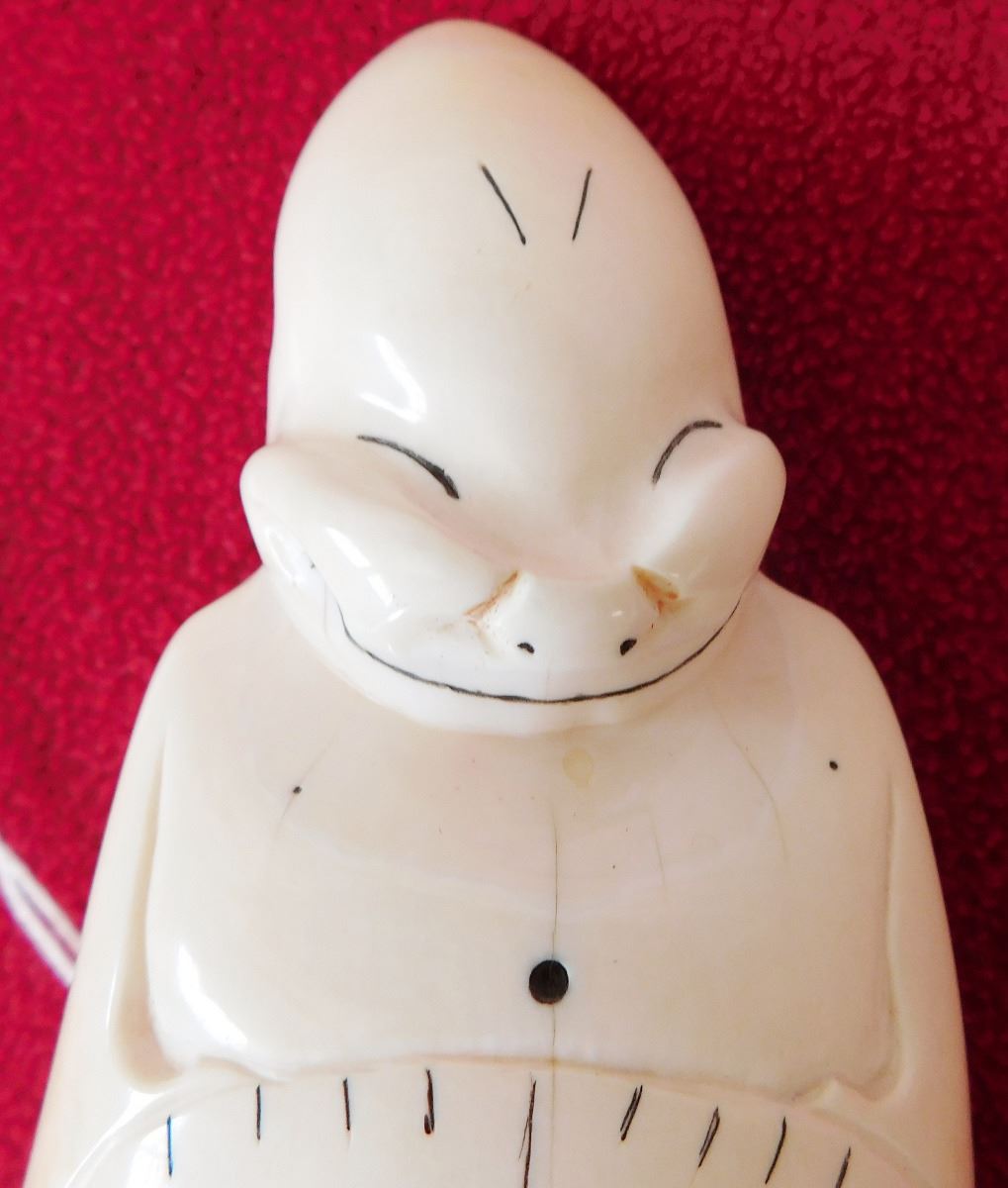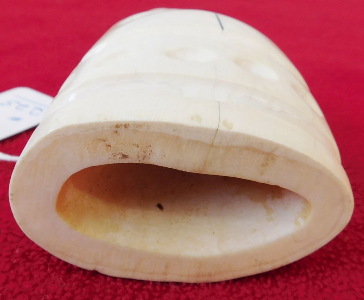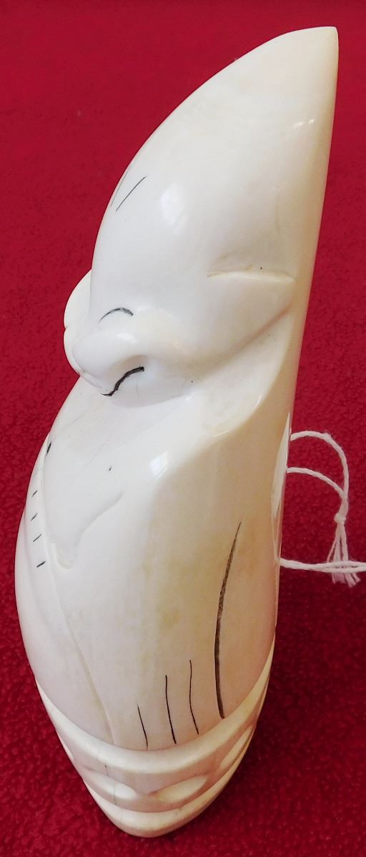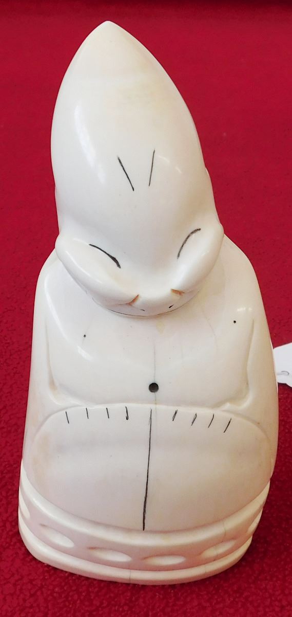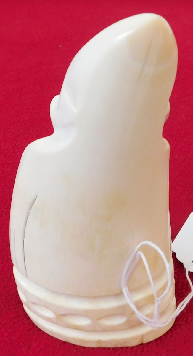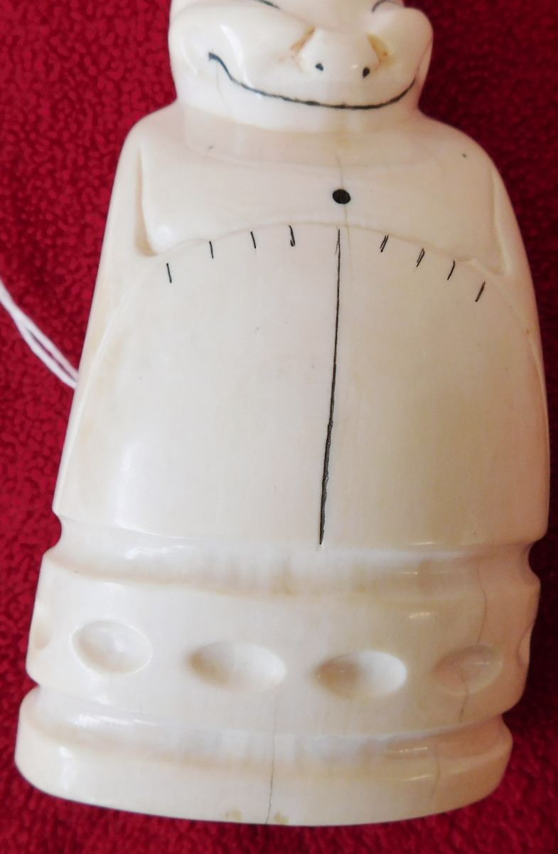 Eskimo Bone Figure, circa 1900s. Made of bone, this item measures 5.75" x 2.5". From coastal Alaska. Exceptional sculpture, smiling figure. Condition: Very good, see images. Shipping: $22.00 w/insurance, signature and double-boxed.