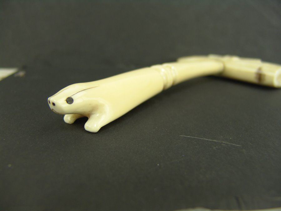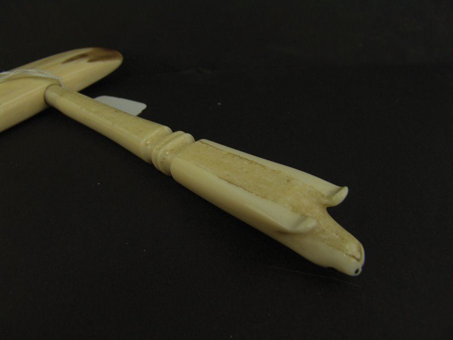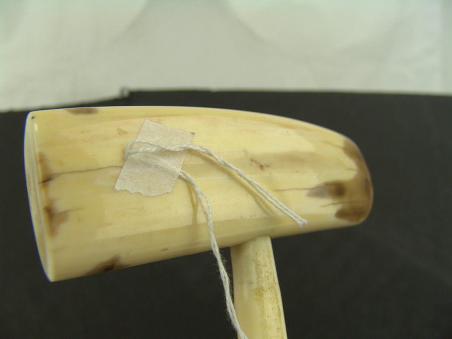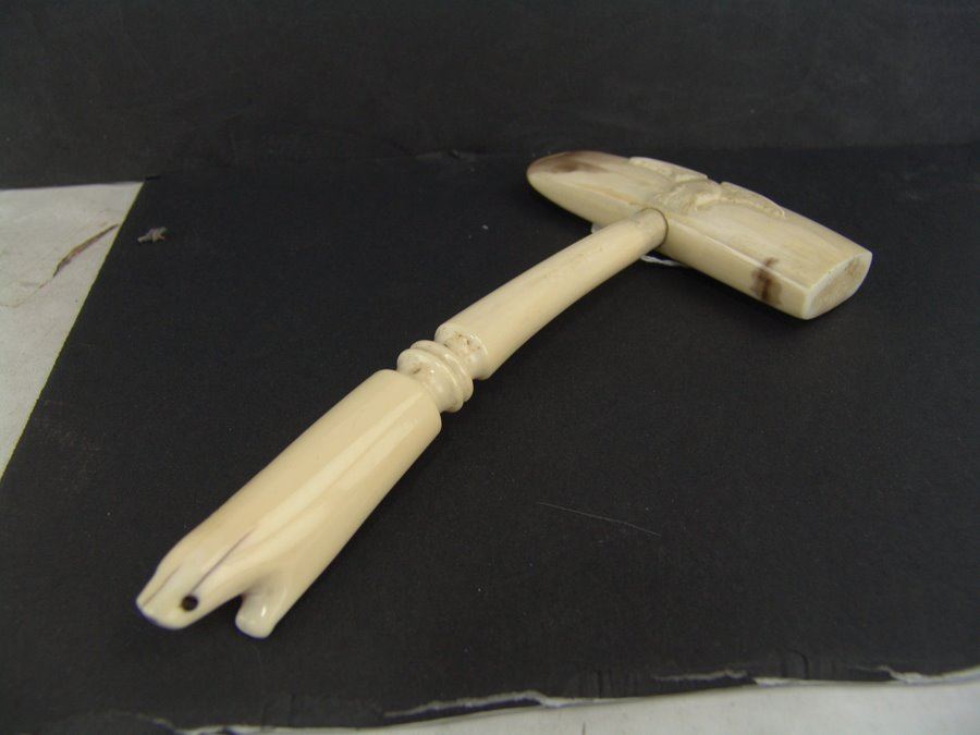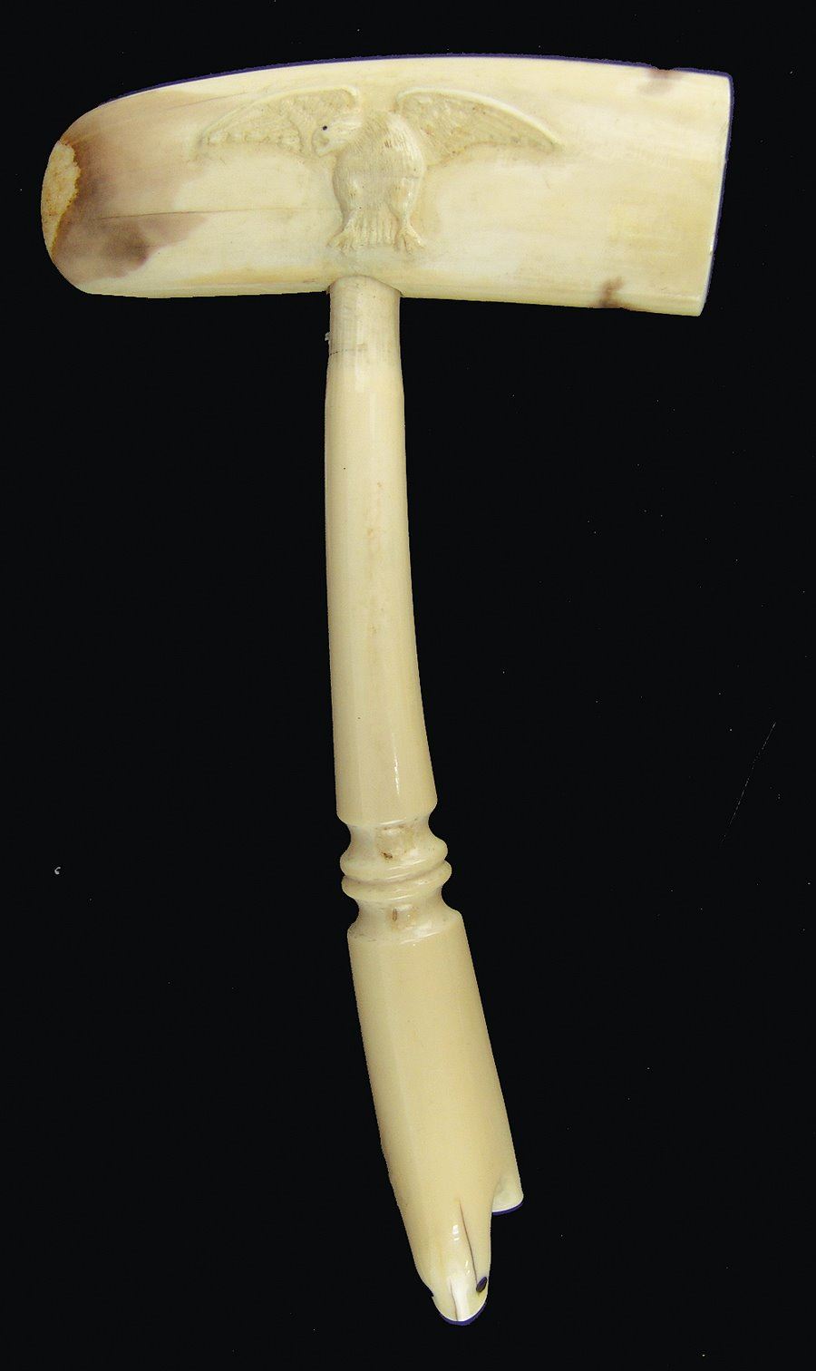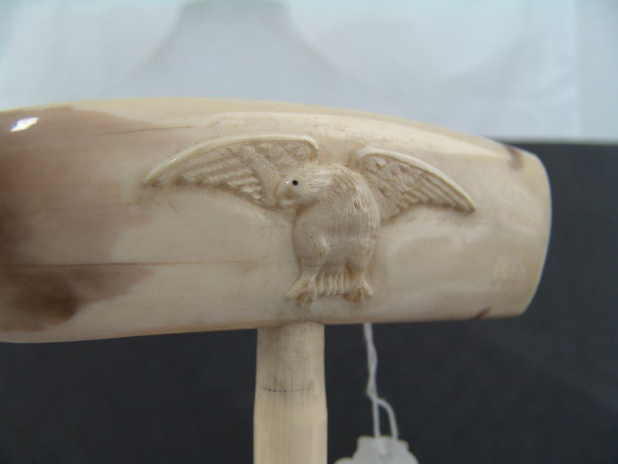 Beautiful hand carved fossilized and walrus ivory gavel the head featuring an eagle, the handle a seal. Very good condition.,Mid 1900s,9"