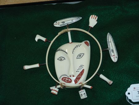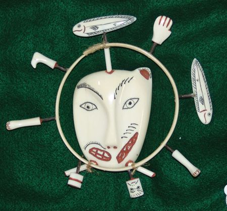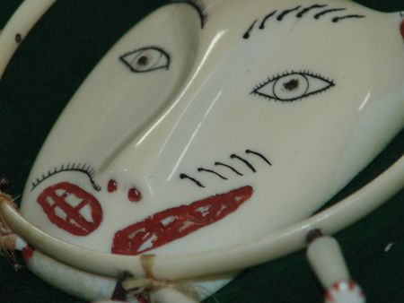 Ca. 1970s, Exquisite hand carved solid ivory "spirit mask" with its traditional appendages. Very good condition. 6-1/4" x 7" x 1"
