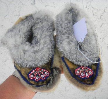 Eskimo Moccasins measuring 10x5x1 inch. The slightly worn moccasins are beaded seal skin. Shipping 14.50