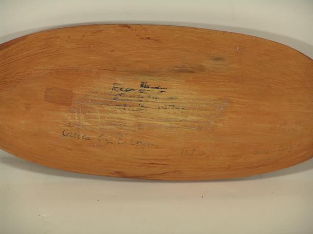 Circa 1970s, Rare carved and painted cedar bowl, the otter form shown with an articulating salmon in its' mouth. 13-1/2" x 4-1/2"