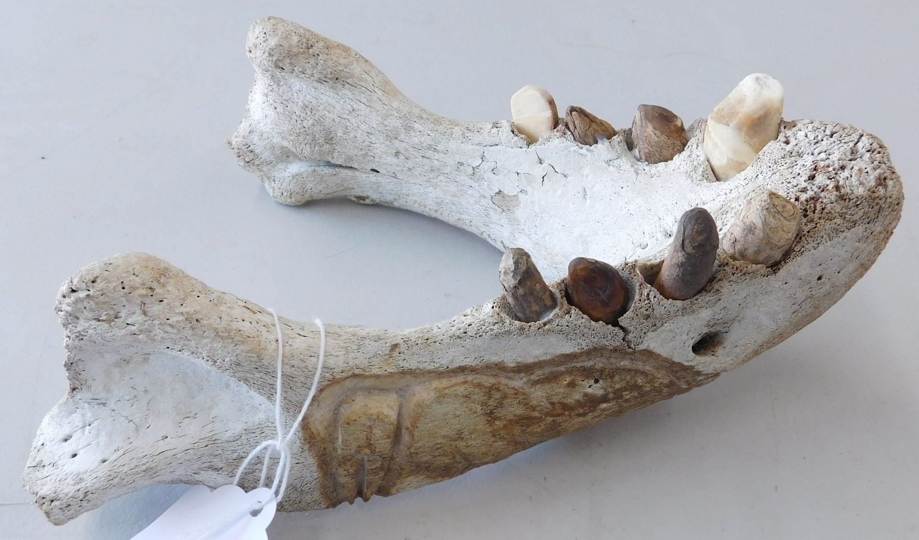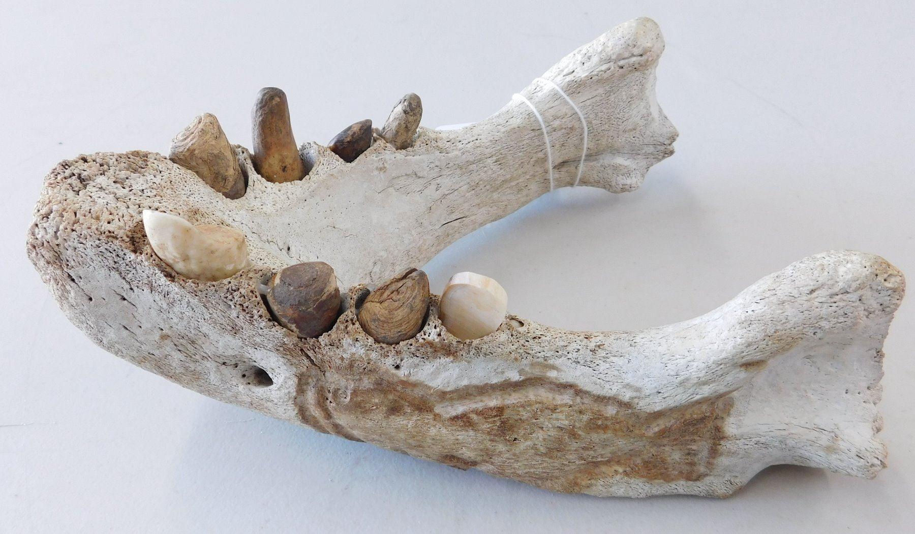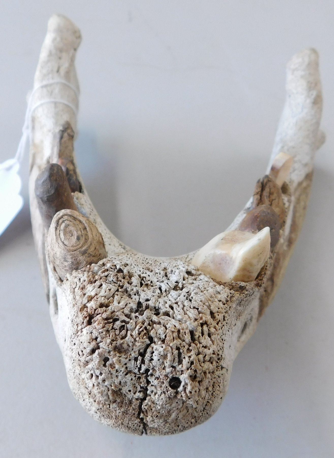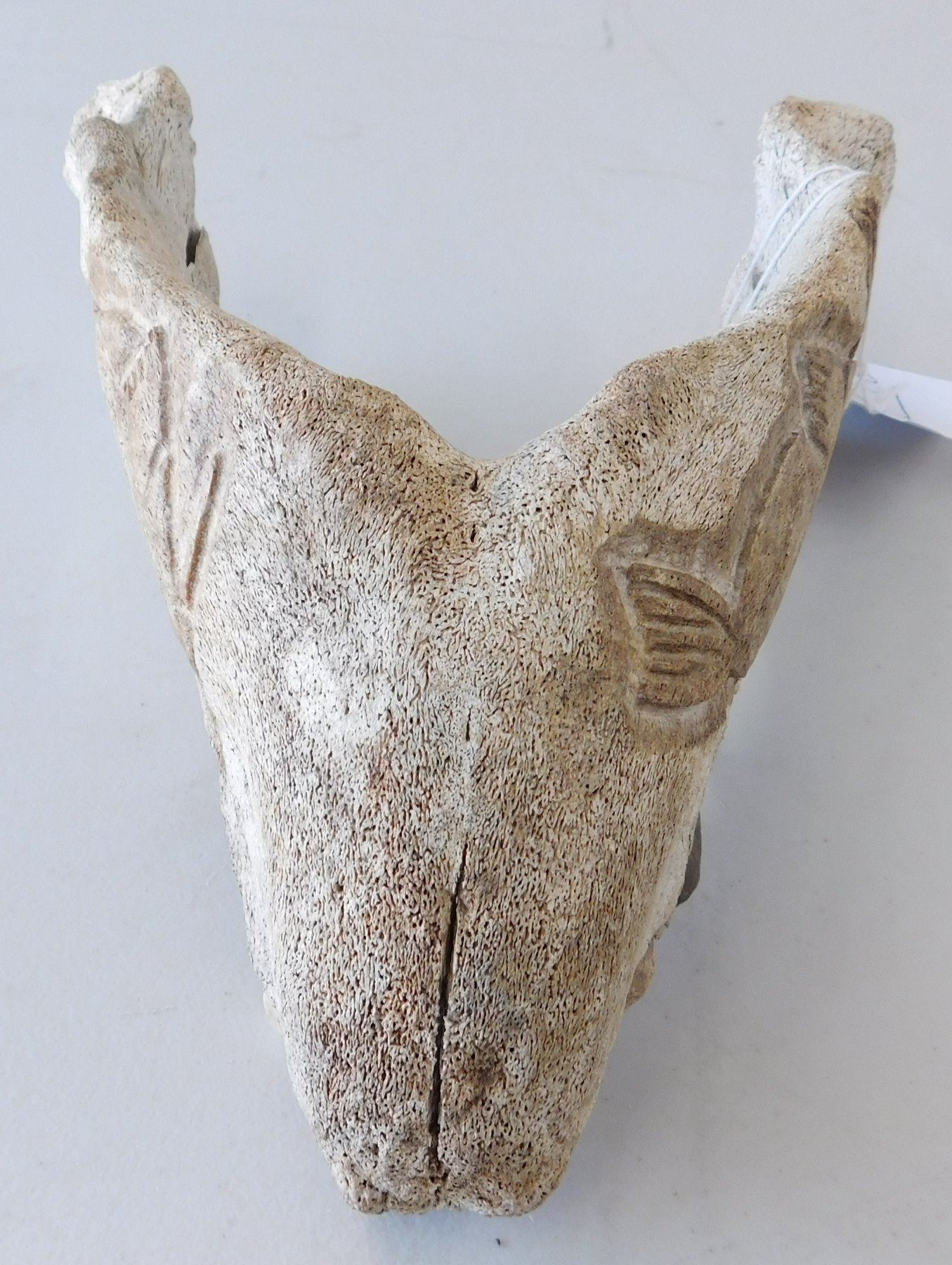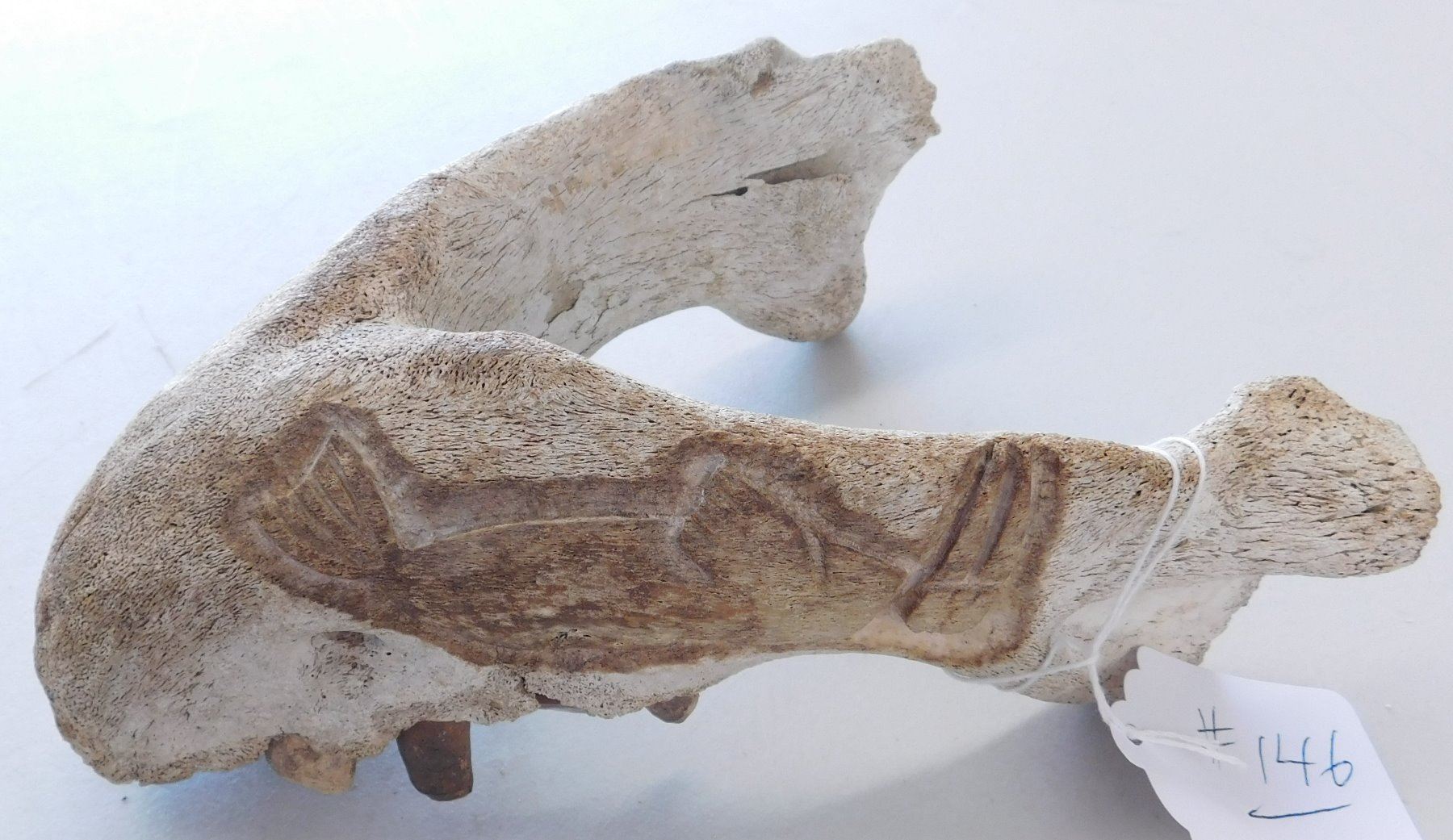 Eskimo Sculpture, circa 1940s. Made of bone, the item measures 9" x 7" x 4". Alaska. Carving of walrus on each side. Condition: Nicks and scratches, newer teeth, see images. Shipping: $30.00 w/insurance and signature.