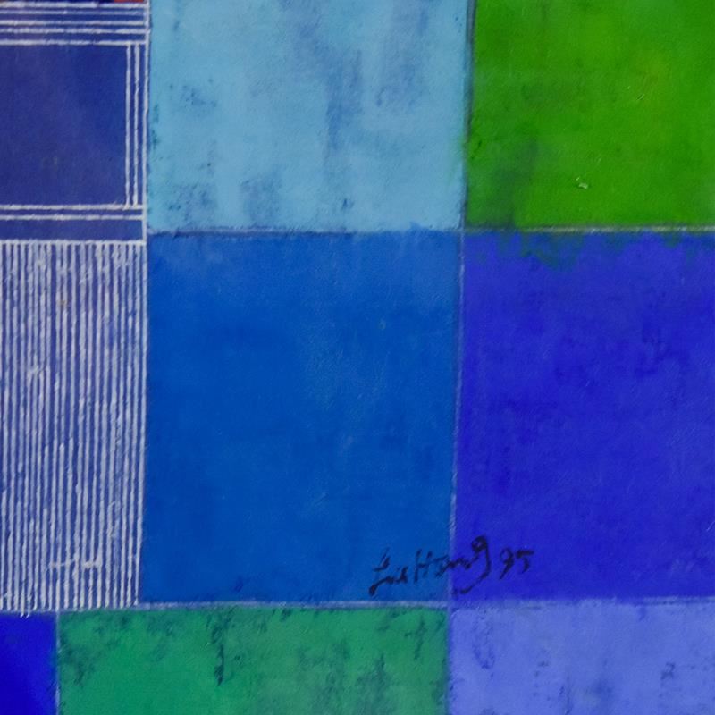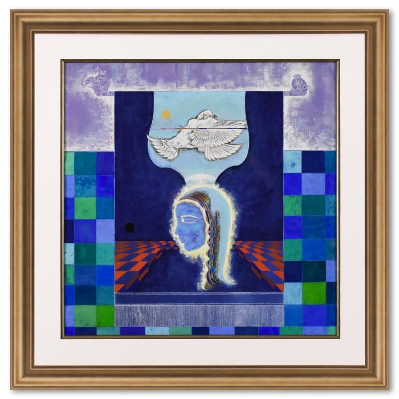 "Esoteric Dream VI (1996)" is an original mixed media painting on paper by Lu Hong, hand signed by the artist. This piece comes custom framed. Includes Letter of Authenticity. Measures approx. 36" x 36" (frame), 26" x 26" (image).