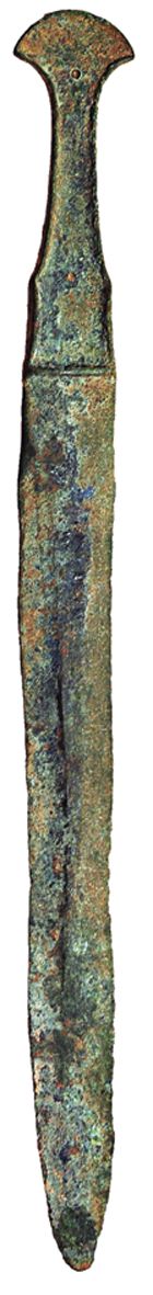 Espada (siglos VIII-IX a.C.). Bronce. Bonita pátina verde. Longitud 38,0 cm. Incluye soporte.