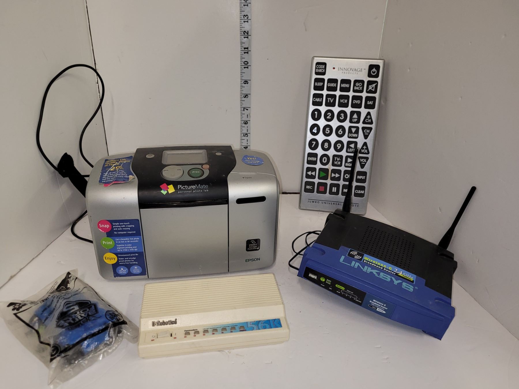 Espon Picture Mate; XL Remote; Hot Wheels Mchappy Toy; Linksys +