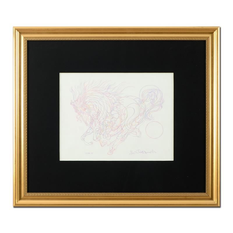 "Essai W" is an original color pencil drawing on paper by Guillaume Azoulay, hand signed by the artist. This piece is framed. Includes Letter of Authenticity. Measures approx. 23.5" x 20.5" (frame); 10" x 8" (image).