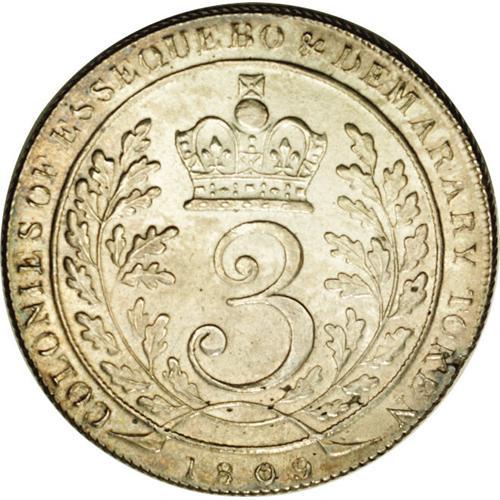 Essequibo & Demerary 3 Guilder 1809, Bust right/Crown o Essequibo & Demerary 3 Guilder 1809,