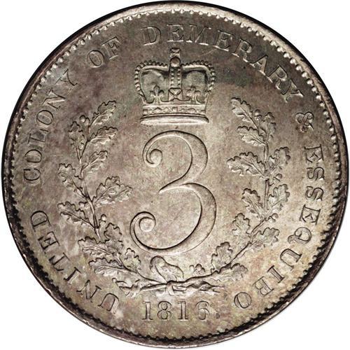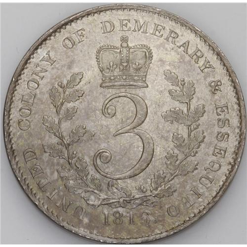 Essequibo & Demerary 3 Guilder 1816, KM15, lustrous, Ch Essequibo & Demerary 3 Guilder 1816,