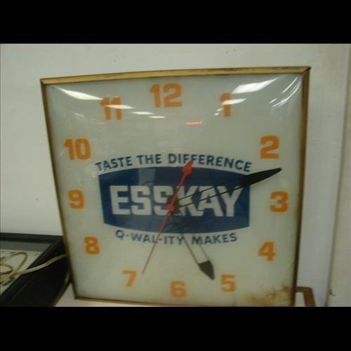 Esskay Clock Inside Glass has a crack in the corner and there is some flaking of the paint.